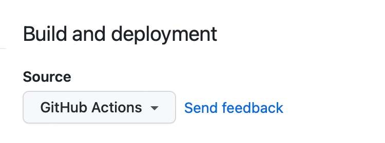 访问 GitHub 上的存储库。选择 Settings 选项卡, 然后单击左侧导航栏中的 Pages 。 在 Source 部分 (在 Build and deployment 下方)从下拉菜单中选择 GitHub Actions 。