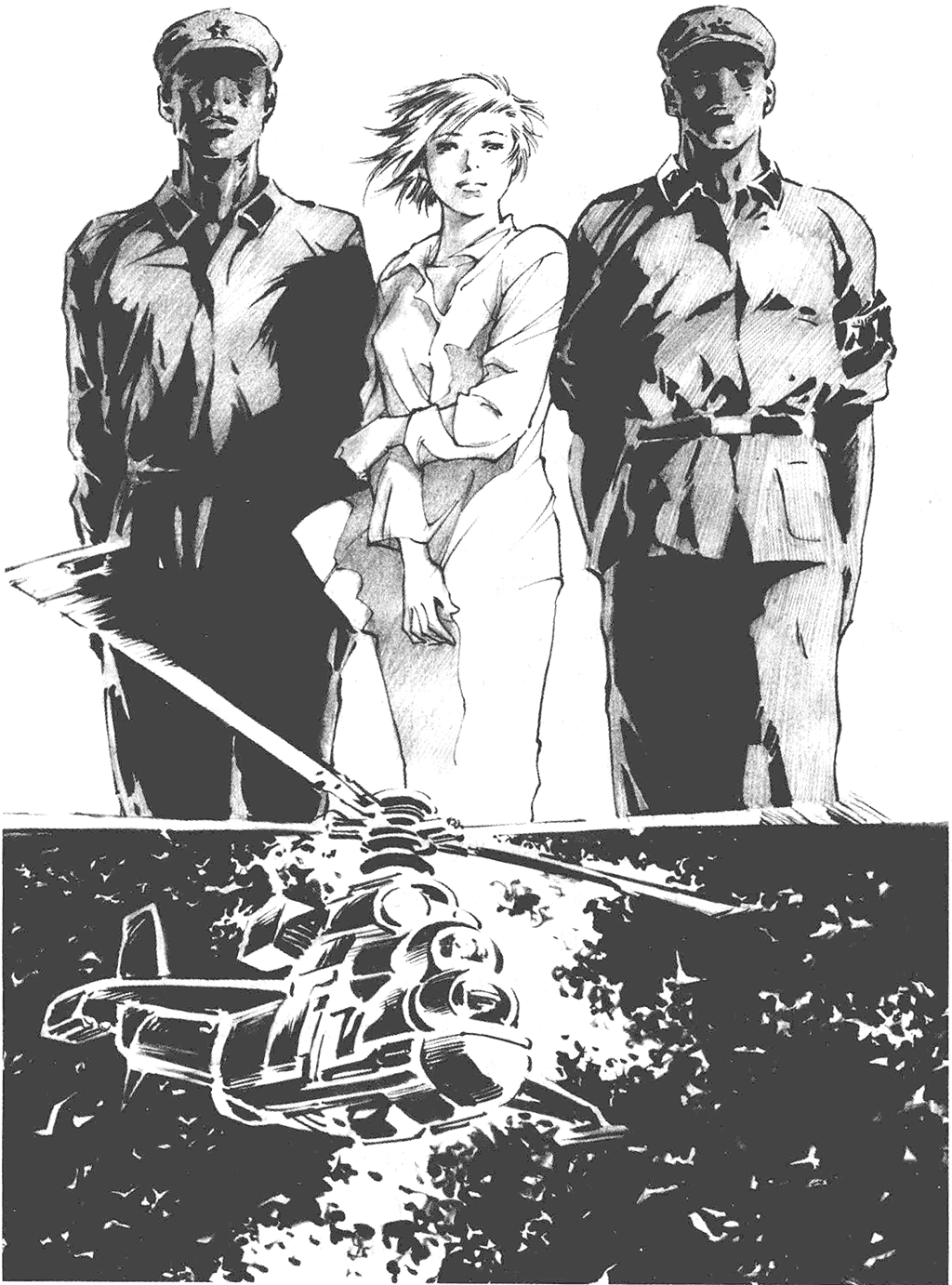 押送叶哲泰上台的红卫兵比别的批判对象多了一倍,有六人,两男四女。两个男青年步伐稳健有力,一副成熟的青年布尔什维克形象,他们都是物理系理论物理专业大四年级的,叶哲泰曾是他们的老师;那四名女孩子要年轻得多,都是大学附中的初二学生,这些穿着军装扎着武装带的小战士挟带着逼人的青春活力,像四团绿色的火焰包围着叶哲泰。叶哲泰的出现使下面的人群兴奋起来,刚才已有些乏力的口号声又像新一轮海潮般重新高昂起来,淹没了一切。